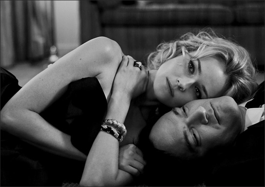 Diane Kruger and Quentin Tarantino promote their latest flick, Inglorious Bastards, in the latest issue of New York Times Magazine. Credit to photographer Jean-Baptiste Mondino who made Kruger look flawless, while making our boy Quentin look completely awkward. Classic!