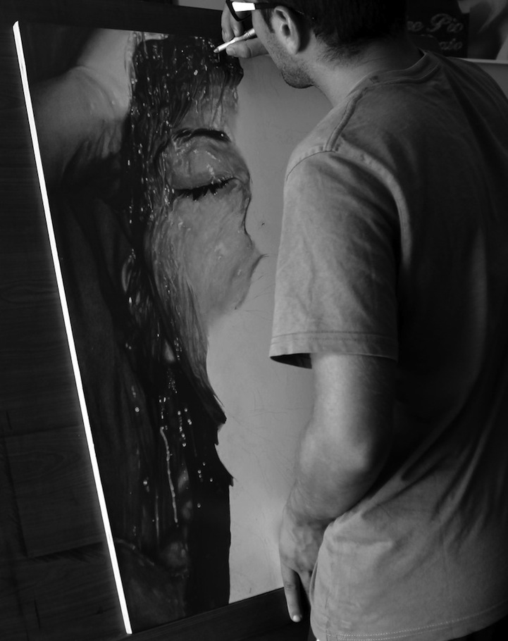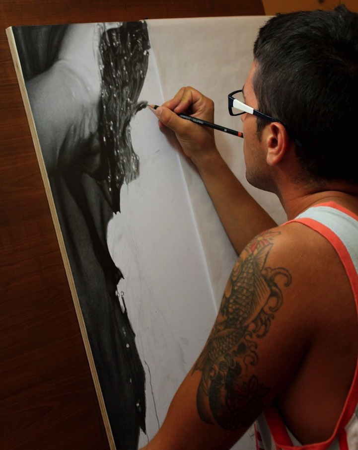 Italy-based artist Diego Fazio, better known as DiegoKoi, is bound to blow you away with his incredible drawing skills. One of his newer pieces titled Sensazioni is an unbelievably hyperrealistic pencil drawing of a woman that has caused people to question the truth of its medium. Is it really done in pencil? The answer is an impressively resounding “Yes!”