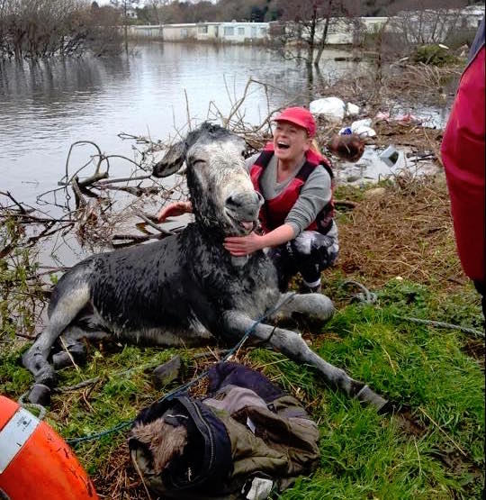 Amidst rising floodwaters in Ireland, a lost donkey was struggling and in great danger.”Code red. Today's emergency. Please help me,” read Animal Heaven Animal Rescue's Facebook post on Sunday. Earlier that day, the animal's owner sounded the alarm when he realized that his donkey was missing and AHAR immediately organized a rescue. After posting a video of the donkey on Facebook along with their plea for help, the animal rescue heard back from a man named Mike Fleming. He was willing to lend them his help and his boat.