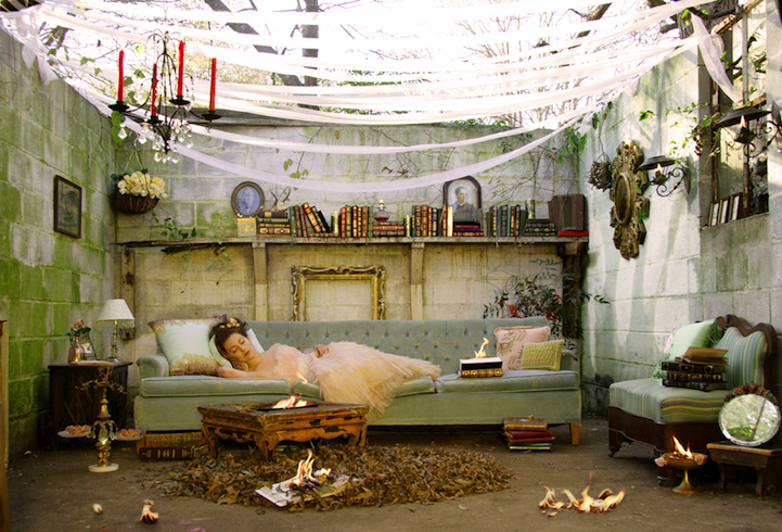 Every concept in Scenes is predominantly shaped by O'Connor's experiences. As a result, these spaces double as a conceptual autobiography and creating them is a cathartic experience. “Building these life-sized installations also allows me to literally live inside my own imagination,” she writes, “if only for a short time and satisfies the need to create a more aesthetically pleasing reality.” Each project takes her months to complete, and after the scenes have debuted, they remain only as a photograph.
