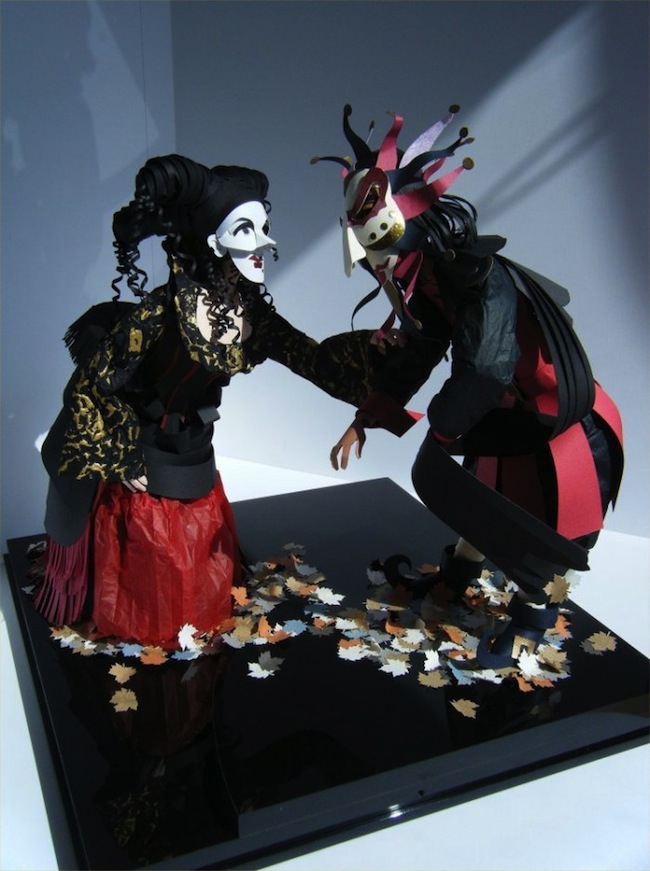 Sher Christopher is an award-winning paper sculptor who is behind these incredible works of art. Her colorful characters spring to life because of her attention to detail. Notice the way the clothing is beautifully draped or how the eyebrows are precariously arched. The magic lies in the facial expressions and poses…