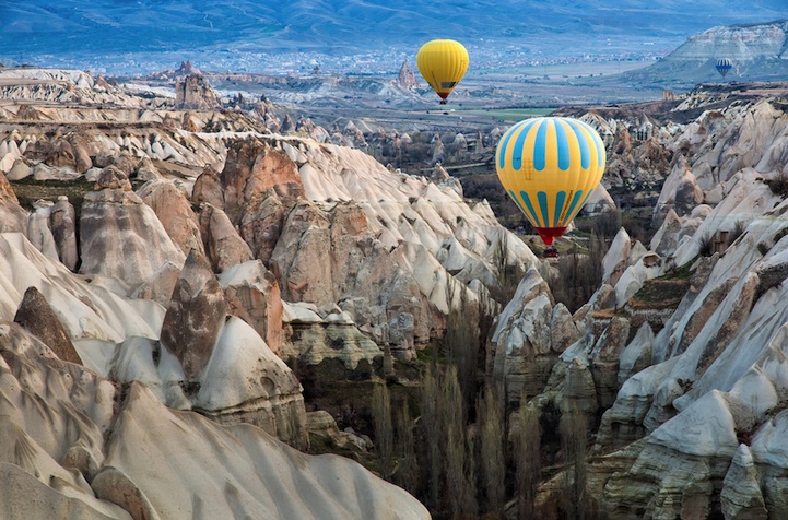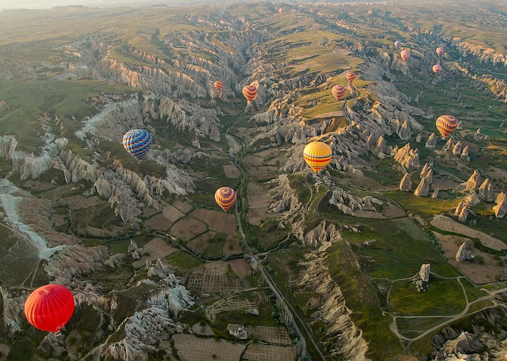 Every day, beginning at sunrise, hundreds of balloons are fired up across the land, each taking dozens of tourists for an hour or so above the surrealistic site. It should come as no surprise that this hot air balloon experience is often listed as one of the best in the world. In CNN's list of 7 breathtaking ballooning adventures, Cappadocia is right up there will Albuquerque, New Mexico and Luberon, France. As they state, “Book a private balloon flight in Cappadocia, Turkey, and you'll get to see lava deposits at Turkey's Mount Erciyes twisted by two millennia of erosion into hundreds of pillars and minarets known as fairy chimneys, making the landscape in the country's central Anatolian region look like a set from Lost in Space.”