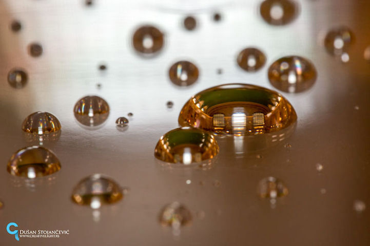 Most of the raindrop photos are digital images, although some are shot on film. Regardless of the media, however, each is captured using a macro technique and completed without the manipulation of Photoshop. “That is why it has flaws in sharpness and a lot of blur,” Stojancevic points out, “but that is something that gives some kind of artistic touch to it.”