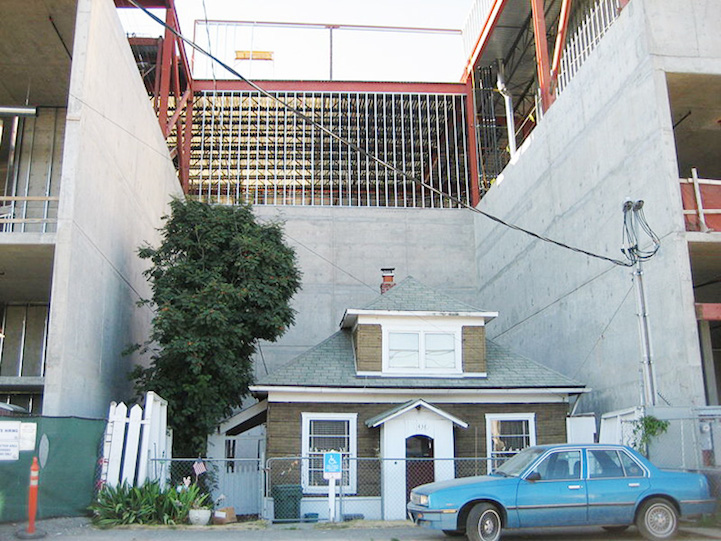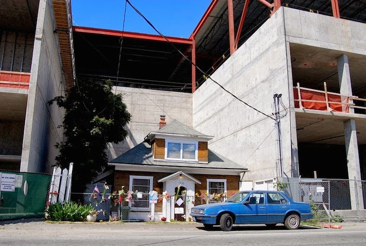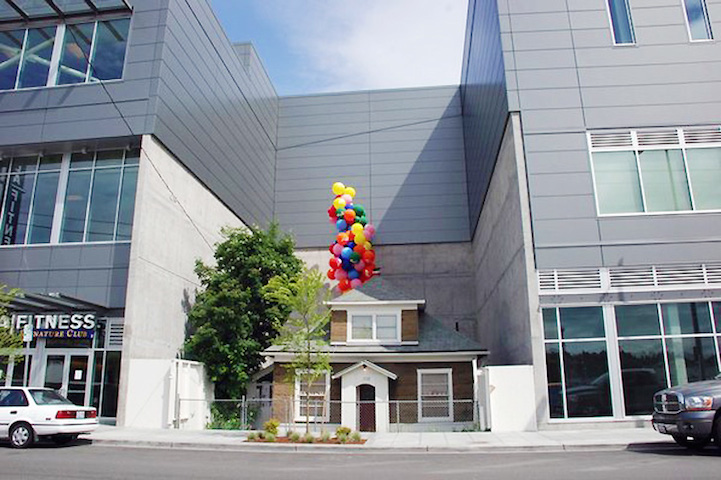 Does this house look familiar to you? Fans of the Pixar film Up might recognize that it looks remarkably like the house in the movie, which similarly occupied a lone space in the middle of rapid change and development that unfolded around it. The filmmakers were allegedly inspired by the story of this house and its owner Edith Macefield, an 84-year-old woman who became notorious in 2006 for turning down a million dollar deal to sell her home in Seattle in order to make way for a shopping mall, forcing the developers to build the mall around the house.