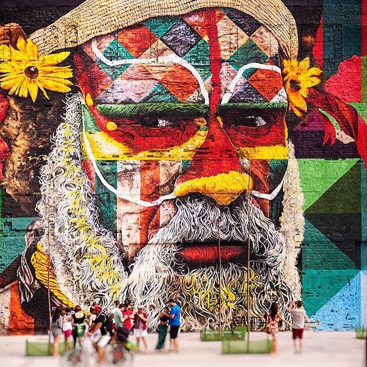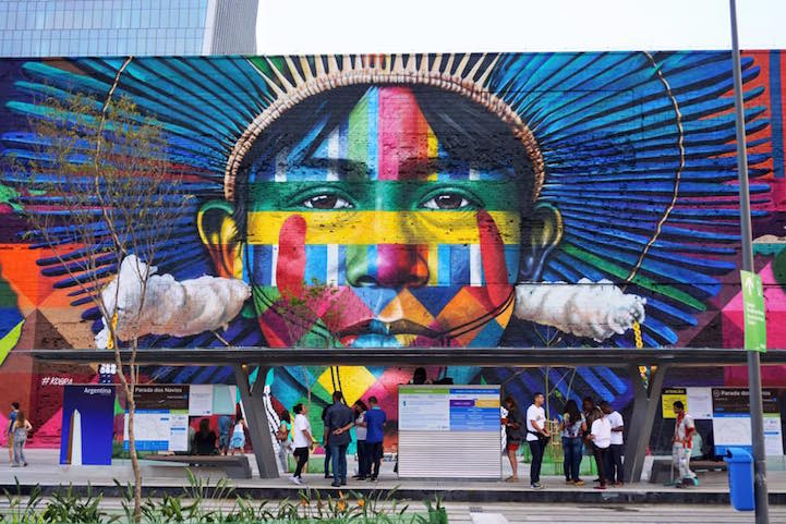 “I'm motivated by challenges,” Kobra shared on the Rio 2016 official website. The cinderblock warehouse was abandoned and in rough shape, meaning that Kobra had to wash the whole building in white and recover some parts before he could begin on the design. The challenge was worth it though. “I was really happy I got to display my work here in Rio de Janeiro,” said the 40-year-old muralist from São Paulo. “This was something I have wanted to do for a long time.”