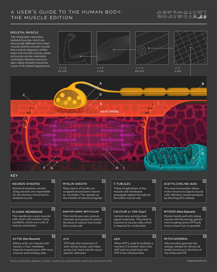 Eleanor Lutz is a designer whose knowledge of molecular biology and love of science is translated into beautifully-designed infographics. Her colorful and educational images contain interesting bits of information about how the human body works and birds fly, but with a novel twist – they're animated GIFs.