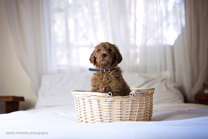 The idea for this photo shoot came during the long drive the couple took to bring Humphry home from his breeder. Minette told BuzzFeed that the series was a “light-hearted poke at parents who do similar photo shoots with their newborns.” Judging from how adorable these photos are, however, they might've started a new trend.