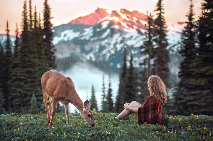 At first, it was animals I photographed all the time (along with a few landscapes). Around 2009-2010, I made friends on Flickr with a lot of photographers who inspired me to start taking creative self-portraits. Over the year, my photographer eye developed and simultaneously my love for nature deepened. I soon realized how impactful the surrounding scenery could be in my creative self-portraiture, so by the end of 2010 I was mixing landscapes and people together. It's no surprise that British Columbia's lovely landscapes have become my biggest inspiration. I only have to take one look at the mountains before instantly feeling inspired to take a photo portraying that awe-inspiring moment of human interaction with nature.