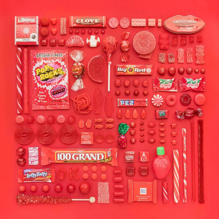 Each of Blincoe's photographs offer small moments of zen. Using bunches of candies, berries, mushrooms, and insects, she groups them into structured, gridded displays and calming gradient waves. Together, the individual items demonstrate the strength in numbers–the repetition is a powerful visual force that provides soothing optical pleasure for our often-overstimulated brains.