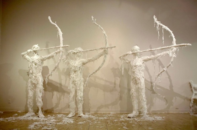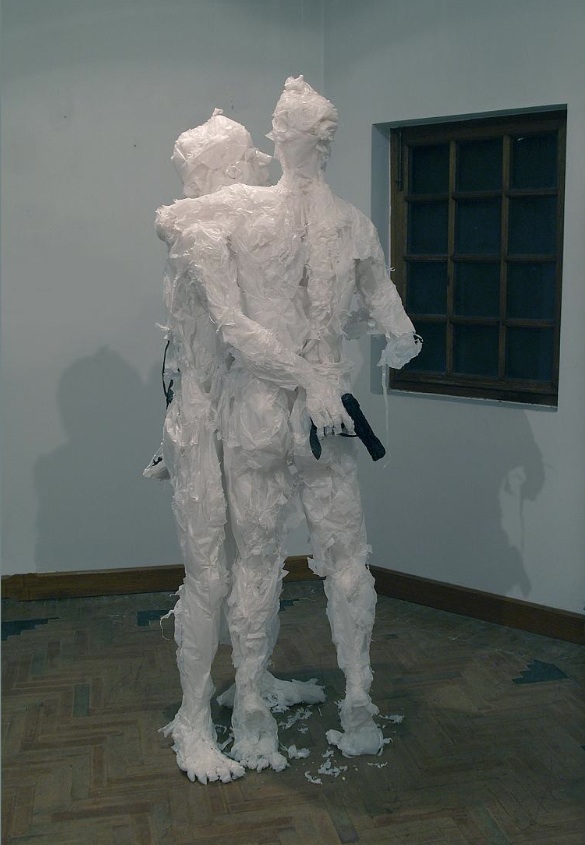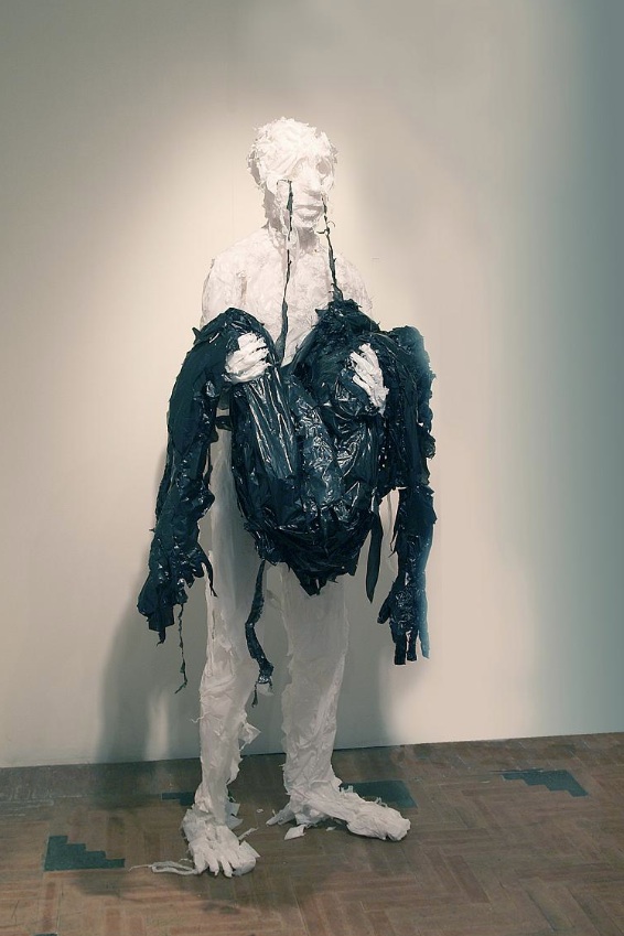 Using trash bags, unused grocery bags and plastic sheets, Pakistani artist Khalil Chishtee creates life-sized figures wracked with emotion. He uses these materials as a metaphor for “recycling our identities” or braving the problems of life.