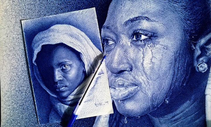 Ghana-based artist Enam Bosokah captures incredible likenesses using only a blue ballpoint pen. The stunningly-realistic portrait drawings depict world leaders, writers, as well as children and couples. Bosokah's work showcases emotional scenes in elaborate detail, and it's as if we're looking at cyan-toned photographs rather than hand-crafted creations.