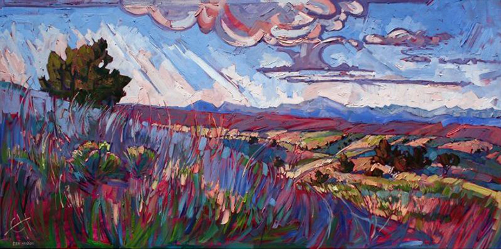 Artist Erin Hanson has always had an affinity for painting, but she didn't pursue her full time artistic career until she was living in Las Vegas and rock climbing at Red Rock Canyon. The breathtaking scenes throughout the land prompted Hanson to develop a goal of producing one painting per week. For the past eight years, she has stuck to that goal and continues to create stunning oil landscapes filled with a sense of wonder.