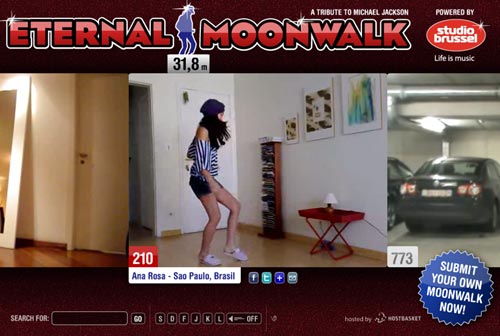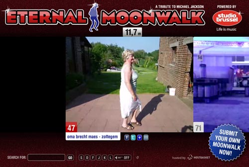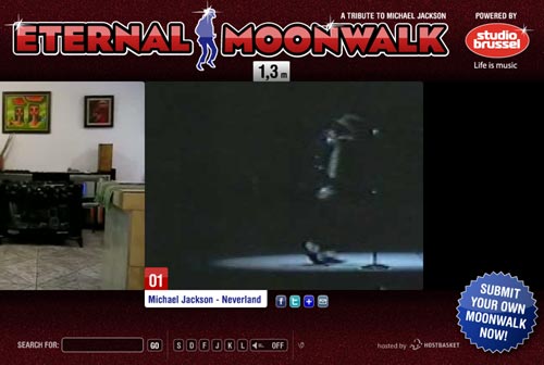 One of the coolest and most interactive websites where people can pay tribute to the King of Pop has sprung up called the Eternal Moonwalk. By Studio Brussel, it's a website featuring a video collage of people performing Michael's famous move. You'll see everyone from dogs to babies to people with a whole lot of spirit try out the moonwalk.
