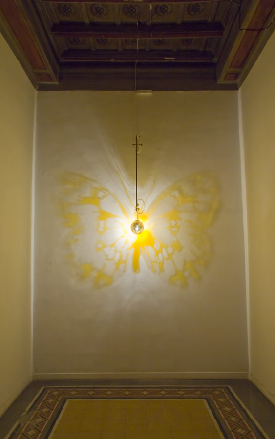 Whether Corneli's piece is a folded sheet of copper casting the negative space of an intricate scene, a suspended triangular lantern expelling a burst of light in the silhouette of a man with outstretched arms, or a few simple stick-like structures on a wall allowing shadows to create the defining contours of animal faces, they each utilize the power of light and shadow to form unforeseeable figures.