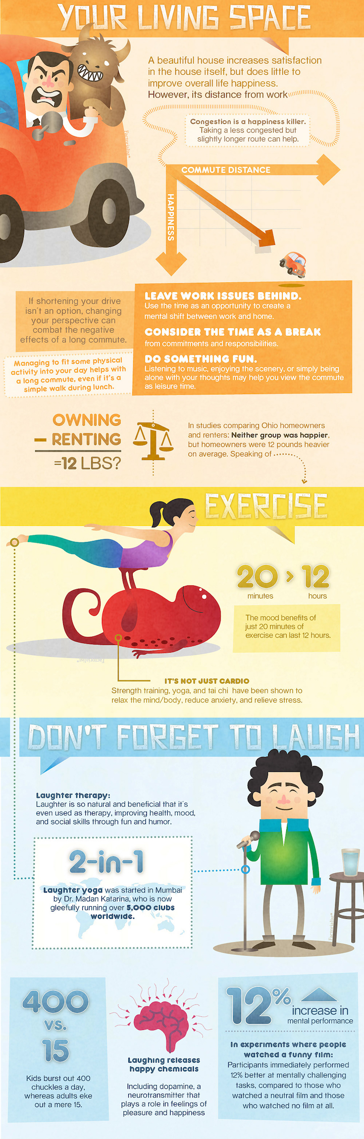 Cut down on your commute (or change your perspective on it) and exercise regularly: