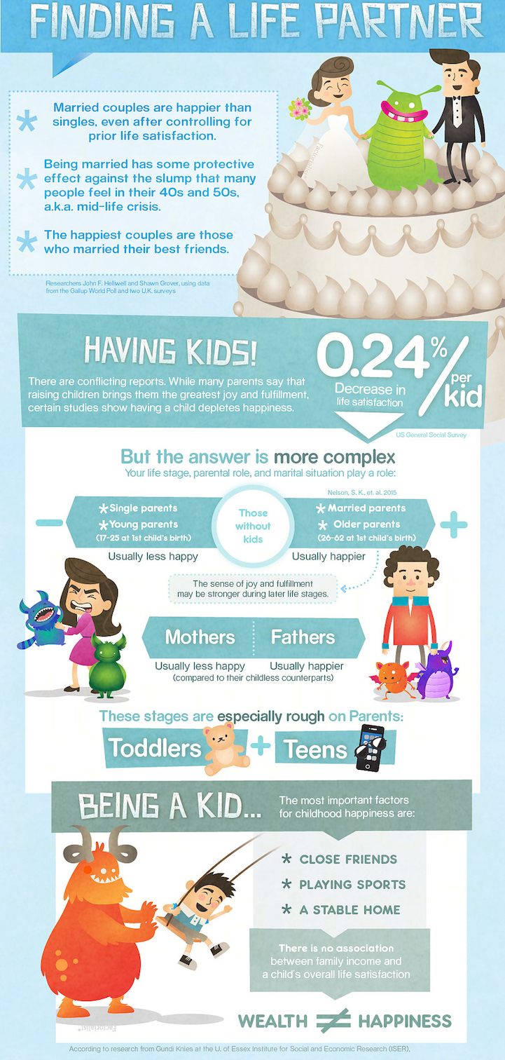 Sharing your life with someone will make you happier, but it's undecided if having kids will: