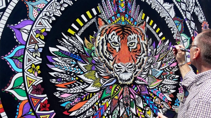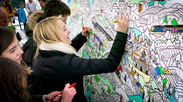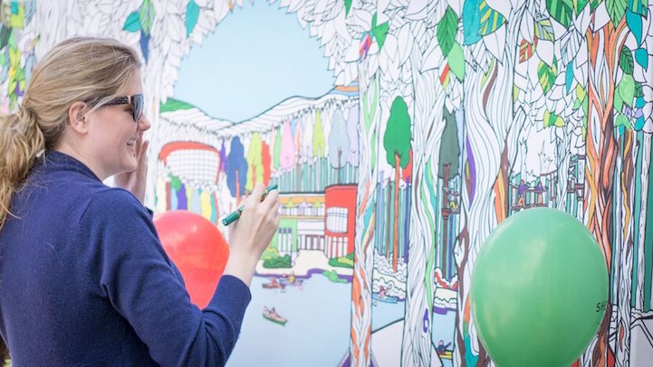 The adult coloring craze is more than just beautifully-drawn books. Thanks to Fancy Features, this fun activity is something that many people can complete together on a much larger scale. Artists Maria Leyden and Chris Mason create giant colorless pictures that are then embellished using a vibrant set of community markers. Once the piece is entirely inked, the canvas becomes something for everyone to admire, and it serves as a unique keepsake for the event.