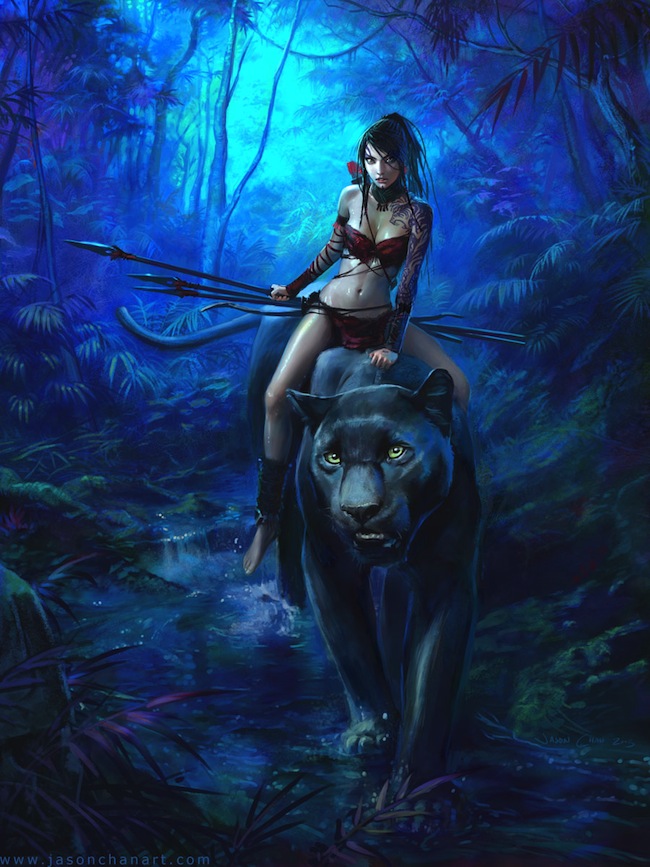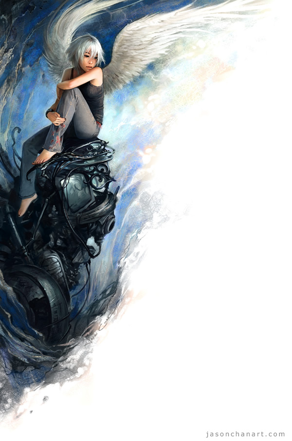 “I love to draw. Ever since I was a kid I've always been drawing characters for make believe video games, cartoons and comics. I also loved drawing my favorite X-men characters, warcraft heroes, and video game sprites. I drew a million Mega Man and Mario drawings. As I grew up, that love for video games and fantasy never left me. I grew to love fantasy novels and that inspired my work. Many of my favorite video games were japanese made so as I drew the characters from those games, I began to fall for the anime style. Of course, that lead me to watch anime – an addiction I still haven't been able to shake. After a couple of yearsof horrible attempts at manga style art, I began school in San Francisco and actually got some decent life drawing and anatomy practice. I began to to be exposed to some of the western masters such as Sargent, Leyendecker, Rockwell, and Frazetta. I embraced the esthetics of western art and tried to improve myself in that direction. Now I am trying to marry my western art education with my eastern art interest and see what happens.” – Jason Chan