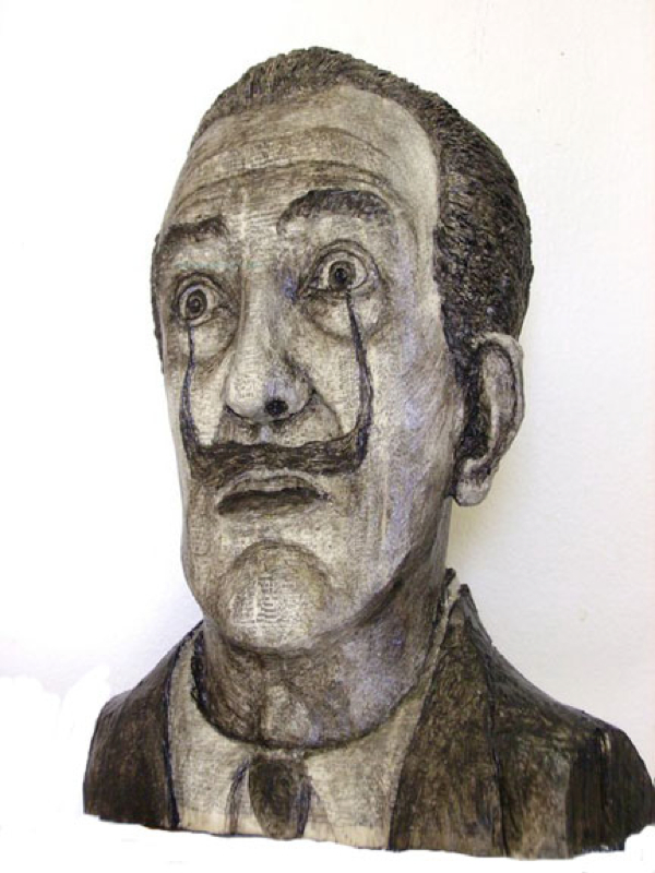 Back in 1995, Alex Queral was just an undergraduate at the University of Washington in Seattle who loved to paint. What he enjoyed the most was creating self portraits using a “heavy impasto technique,” which required a lot of paint and sometimes even wax to make the faces a bit more sculptural. Suddenly, he hit a wall. Queral was using so much paint that it was costing him a fortune. As luck would have it, one day, he found a big block of Styrofoam from which he carved out a face for the first time. “I didn't like using the Styrofoam, however,” he says, “and on another day noticed a stack of old phone books outside waiting to be recycled. It occurred to me that they were not unlike blocks of very soft wood and there it all began.”