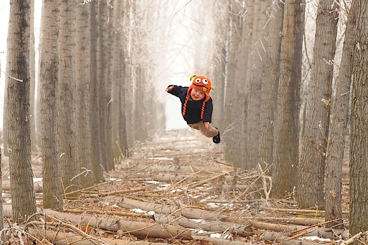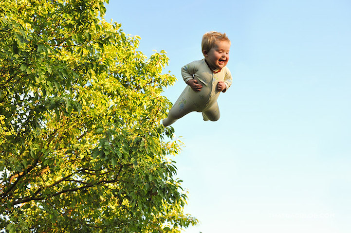 Wil is the 5th child in the Lawrence family and the only one with Down Syndrome. Whenever he would crawl around on the floor, he'd attempt to lift his legs in the air and flap his arms, making his parents think that he was trying to fly. Inspired by this, the dedicated photographer decided to create upbeat images of Wil flying. By holding his son aloft and then later editing himself out of the photograph, the talented father came up with the photo series known as Wil Can Fly.