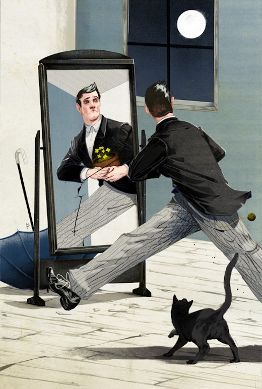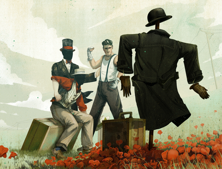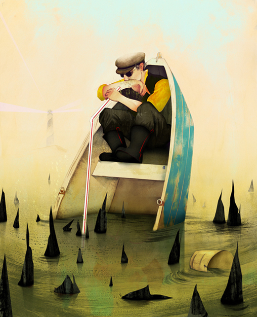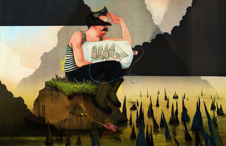 When you first glance at Jonathan Bartlett's illustrations, they'll probably remind you of Norman Rockwell's classic paintings. They have that same sort of nostalgic feeling to them – the kind that makes you long for simpler times, when an ideal life seemed like it could exist. But look a little closer and you'll notice a darker theme running throughout. His illustrations show man fighting within himself; our lifelong quest to find answers where none seem to exist. Similar to Rockwell, you can also appreciate Bartlett's wonderful, storytelling style. Read how important that element is to him in our interview, below.
