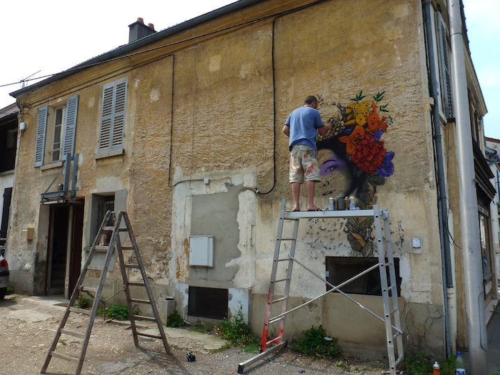 In looking through his photos, what I enjoy most are the ones that show each piece coming together. As Fin DAC precariously stands on a ladder, carefully spray painting each section, it gives you a deeper appreciation for his work, doesn't it?