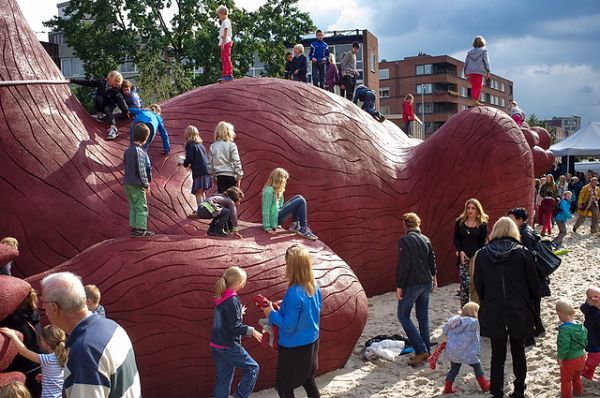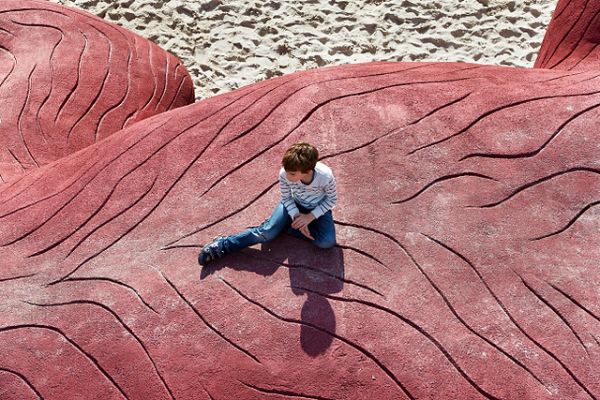 Hofman's other “big” project that's making headlines these days is a 30 meter long concrete sculpture of an aardvark in Arnhem, Netherlands. Rocking his gold party hat, the red colored aardvark is a site specific work created to celebrate the zoo's 100th anniversary. You can watch the making-of the massive sculpture, here. Love how kids are invited to climb all over this one.