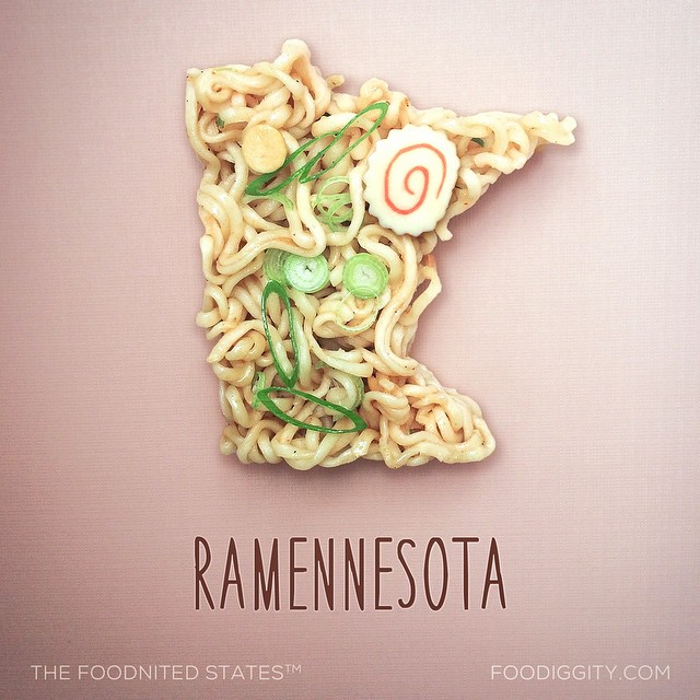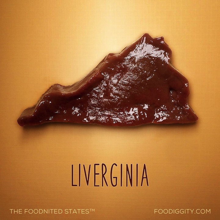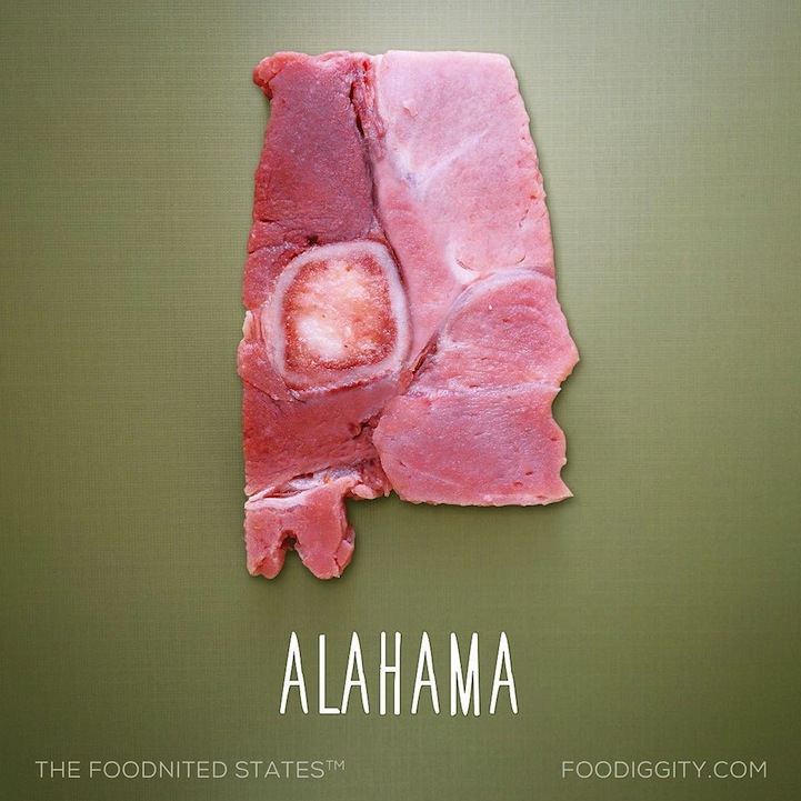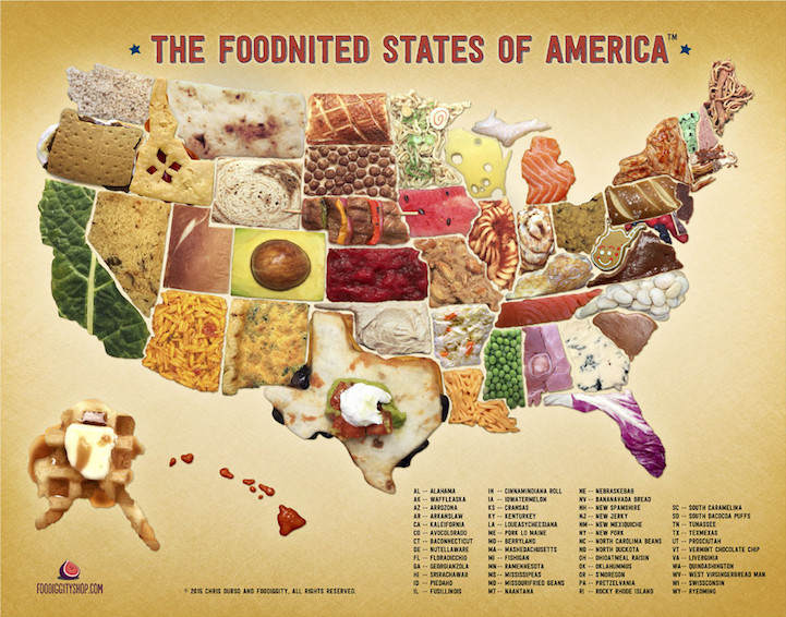 UPDATE: Chris has officially composed all 50 Food States into one map. Scroll to the bottom of this post to see the full map, and to purchase a print, head over to Foodiggity's shop.