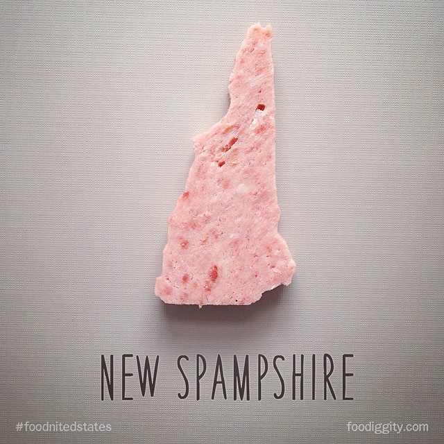 The project began with “New Jerky” (a lean piece of beef jerky cut into the shape of New Jersey), followed by “Kaleifornia” (a fibrous piece of kale shaped into the sunny state of California) and “Pork Lo Maine” (the northernmost state of Maine made from a carefully shaped batch of pork lo mein). From there, the father-son duo took their time rolling out each newly named state.