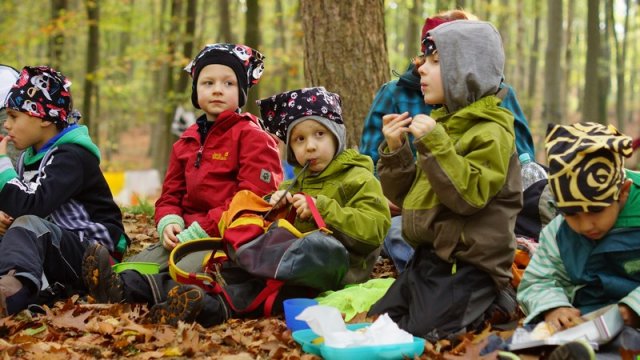 Parents drop the children off in the morning, and then they walk a mile or so into the trees with their teachers, where they learn about their personal strengths and abilities while picking berries, building huts, hiking, and more. No matter the weather, the kids stay outside. Even naptime is held in the fresh air under a cozy shaded tent.