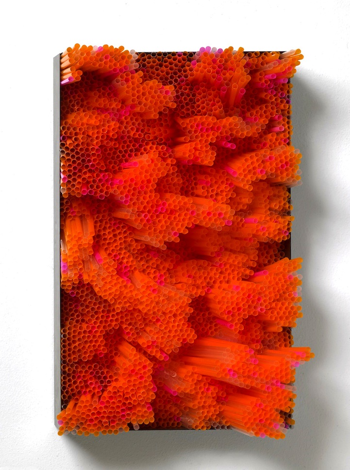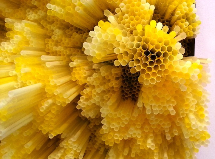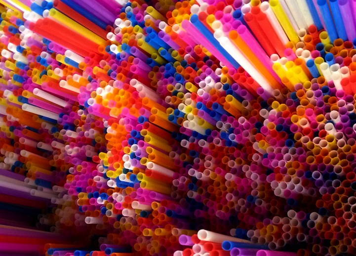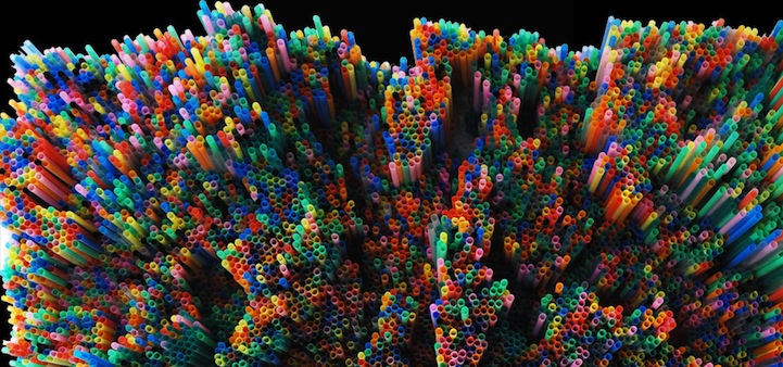 Italian artist Francesca Pasquali uses everyday drinking straws to create amazing three-dimensional art installations. The colorful plastic materials are cut to varying lengths and arranged in patterns that viewers will want to reach out and touch. Collectively, the single little straws form a massive synthetic landscape filled with peaks and valleys.