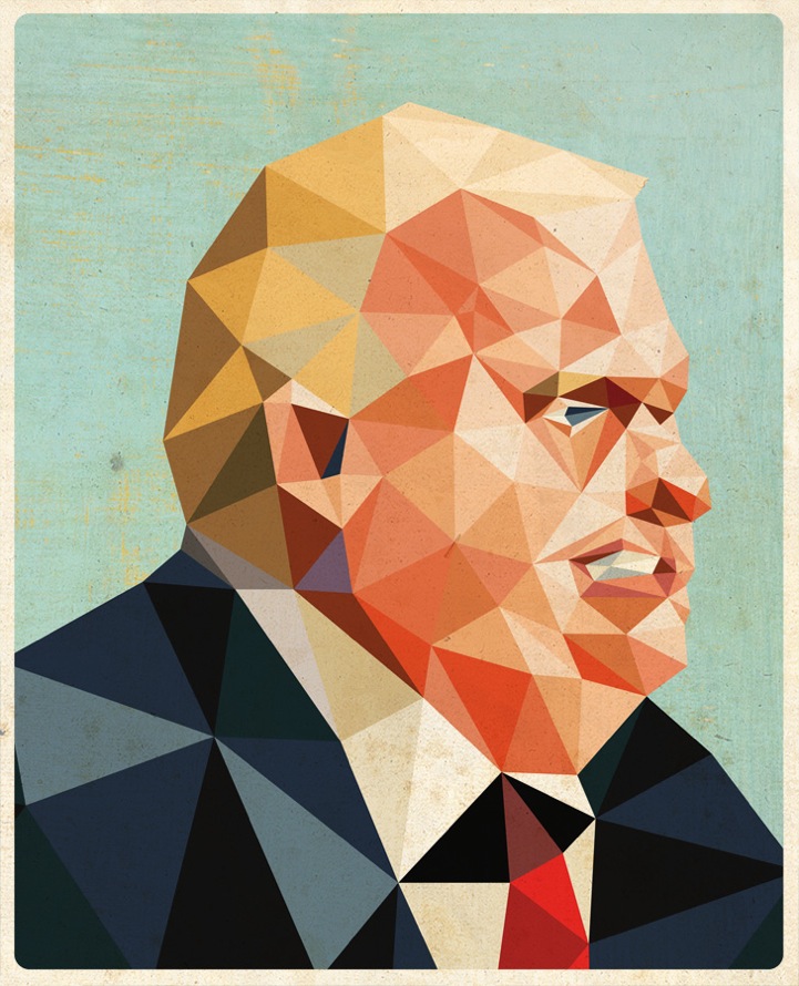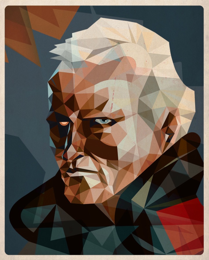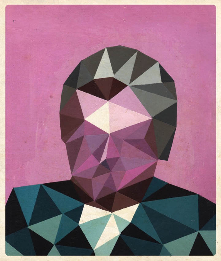 Finding inspiration from world-renowned painter Pablo Picasso's cubism era, illustrator and designer Dave Murray has created his own line of “futuristic cubism” works in his series entitled Polygons. Relying heavily on multi-toned geometric shapes, Murray produces stylized portraits that almost appear like sharp, pixelated images. Although, rather than the standard square-shaped pixels, these works feature primarily triangular blocks of colors to depict pop culture figures.