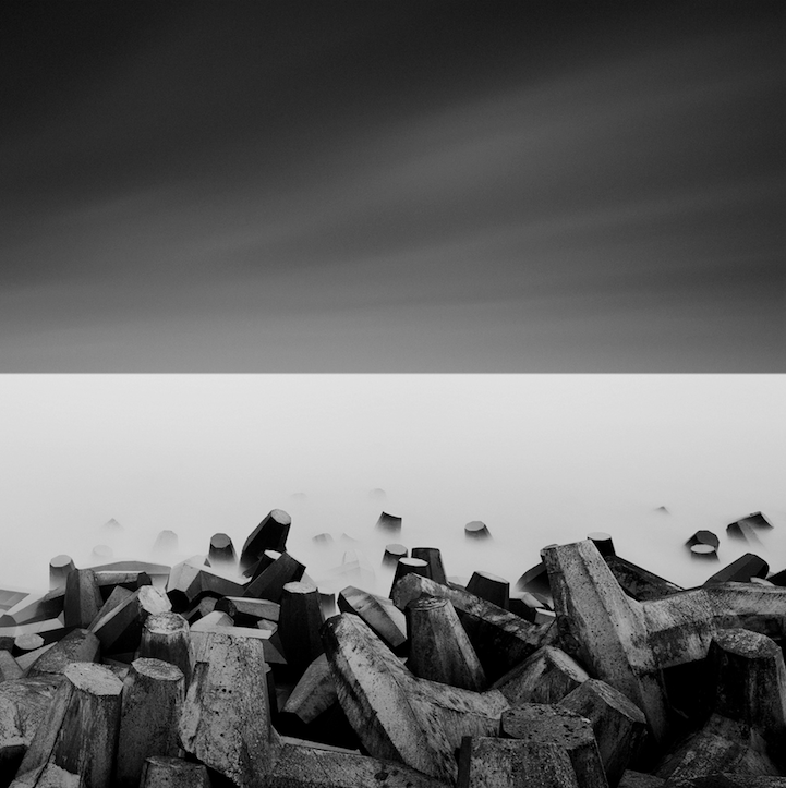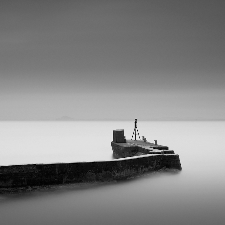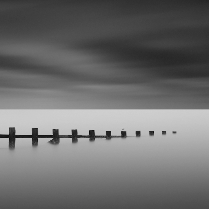 If you are in need of a calm moment during your busy day, we highly recommend taking a look at these soothing black and white photographs by Gavin Dunbar. The Edinburgh-based photographer focuses mainly on seascapes and minimalist subjects in these long-exposure images. He finds everyday objects, like a rock or a wooden post, and turns them into geometric, high-contrast patterns against soft, blended and blurry backgrounds.