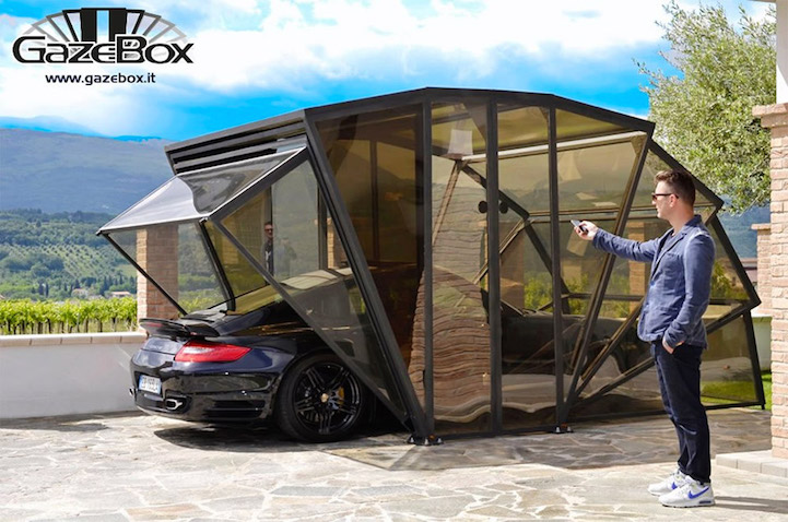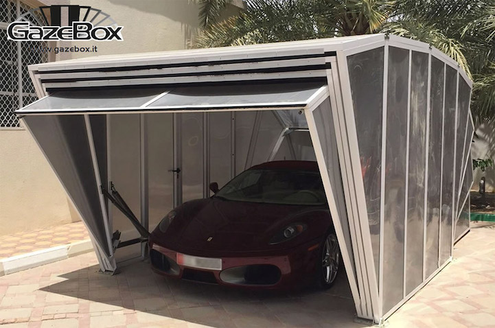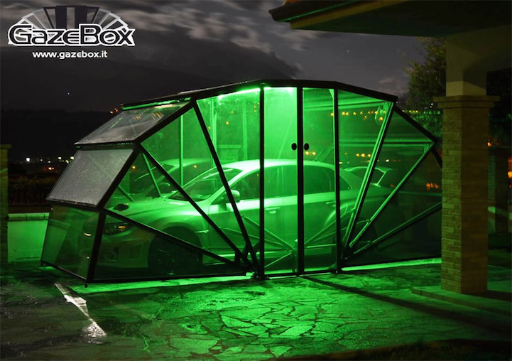 The carport is also easy to use, boasting a quick installation and anchorage in the ground. It offers a lot of special add-ons, including the ability to be remote controlled. Owners can even customize the color and patterning of its powdered, painted, and protected framework. In addition, features like LED lighting, air conditioning, and a theft alarm are available, ensuring that the GazeBox will complement the look and needs of any home.