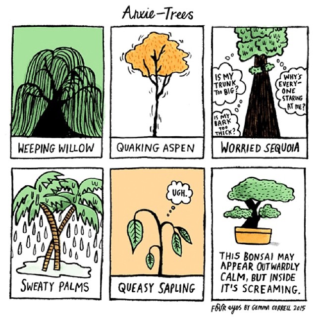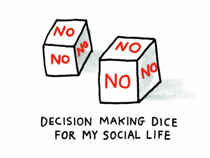 British illustrator Gemma Correll combines art and humor to cope with the depression and anxiety disorder she's dealt with throughout her life. Globally, 1 out of every 13 people are affected by anxiety (the most common form of mental illness) and depression impacts an estimated 350 million people–so the artist definitely isn't alone in her struggles. That's why she began to create comical illustrations, paving the way for others to start conversations about mental health. “The illustrations were all inspired by my own anxieties and neuroticism. I suffer from clinical anxiety and depression and I find that the best way to deal with it is to find humor in it,” Correll told Mashable. “I honestly think that humor can be a savior at times of distress or, if you just live with a constant level of anxiety and depression like I do.”