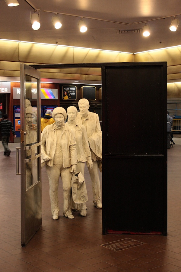 George Segal was an American painter and sculptor who was best known for his life-sized human sculptures made of plaster bandages (or the material used in making orthopedic casts). His stark white sculptures can be found in public spaces around the country – sitting on park benches, standing next to each other in line, and working together on make believe construction sites. The most intriguing thing about them is that they're actually hardened hollow shells of actual humans. May of them were anonymously placed in urban environments just waiting to be found.