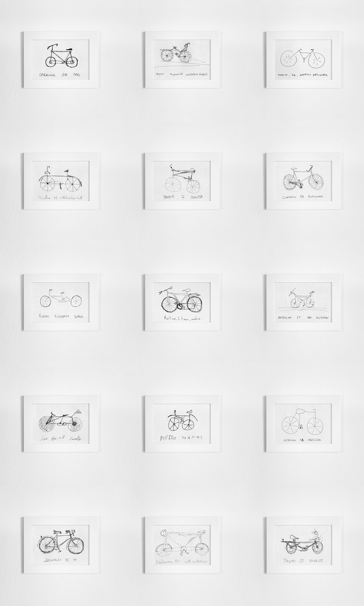 For over six years, Gimini has been asking strangers to draw bicycles on the spot, straight from memory. His participants have ranged from 3 to 88 years old, spanning seven different nationalities. He approaches his project like an informal psychological experiment, seeking insights on human behavior within the data he collects. For example, many contributors confuse the placement of the chain, though 90% of those mistakes are attributed to women. Men, meanwhile, are much more likely to over-complicate the structures of the frames.