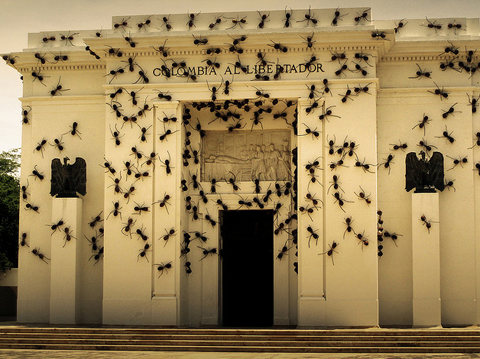 This is not the only building that Gomez has invaded with his ants; the artist has installed similar ones on various Colombian buildings since 2007.