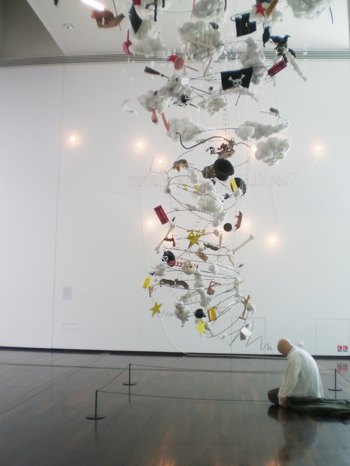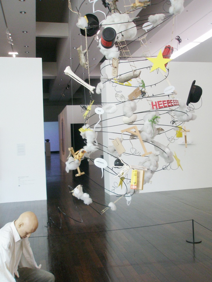 Contemporary artist Gilles Barbier's sculptural installation titled L'ivrogne, translated as The Drunk, depicts a sullen man, down on his luck. Replicated after the artist himself, the figure has a spiraling whirlwind of thoughts physically emerging from his head. The artist uses his masterfully sculpted clone to give us a glimpse into a drunkard's inner rumination, which appears to be quite hectic.