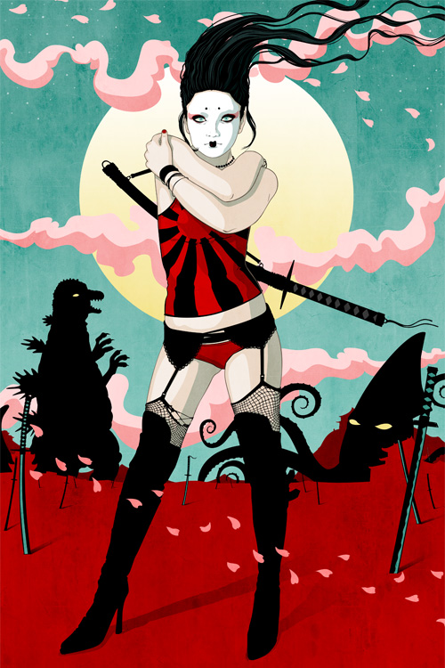 It's the bright, contrasting colors that attract my eyes to Jason Levesque's illustrations. Also known as the Stuntkid, Jason came up with his art name while working at a dot-com start-up in Williamsburg. “I would ride my skateboard down the stairs. I was doing a lot of office stunts. I thought maybe Stuntboy, but that name was already taken, so I went with Stuntkid.” Most of Levesque's art starts with a photograph taken with his Nikon D50 camera. “When I shoot through the lens, I'm imagining what I'm looking at as an illustration. Sometimes I have to ignore the background.” “I don't have a motive to my art work. I think that kind of sets me apart from artists and puts me more in the world of illustration. People paint with cause or try to bring about a world of change. My art is really for the sake of aesthetic quality,” he said. “As an illustrator, I come up with an idea and then the most effective way to get it done in the practical sense. The entire time, I'm focused on the end product and not the inspiration.” If you like Jason's work, you may want to check out his colorful book, “Girls are Pretty.” Great job Jason – Love your work!