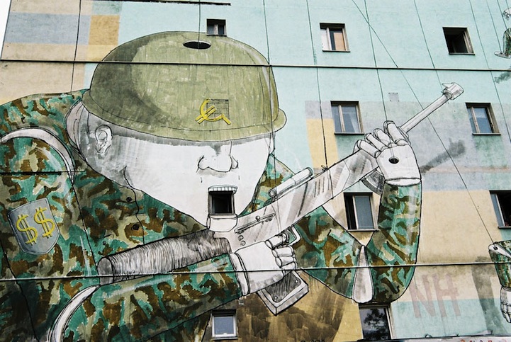 One of our favorite street artists, Blu, just completed these amazing large scale murals in Europe. Using the facade of high-rise buildings as his canvas, Blu sends very relevant political messages through his works.
