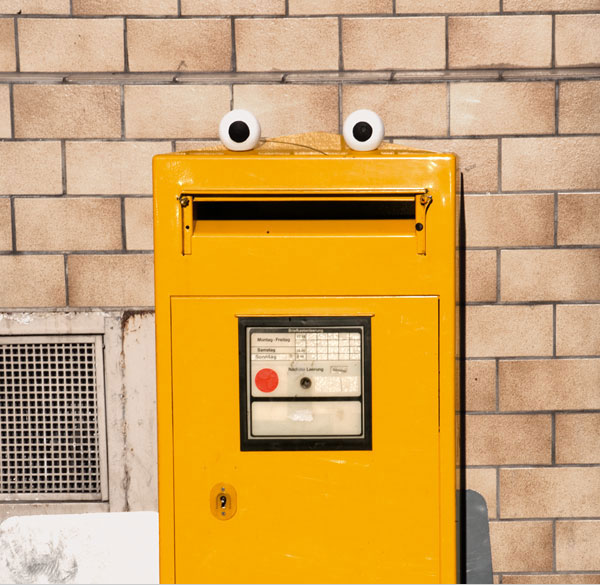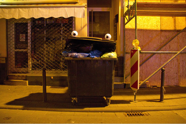 28-year-old artist Timm Schneider brings life to the town of Weisbaden, Germany by putting googly eyes on everyday objects on the street. He calls the series They Live and his technique is very simple. He creates eyeballs using either ping-pong balls or styrofoam balls and strategically places them on otherwise boring and overlooked objects such as toilets, poles and garbage bins.