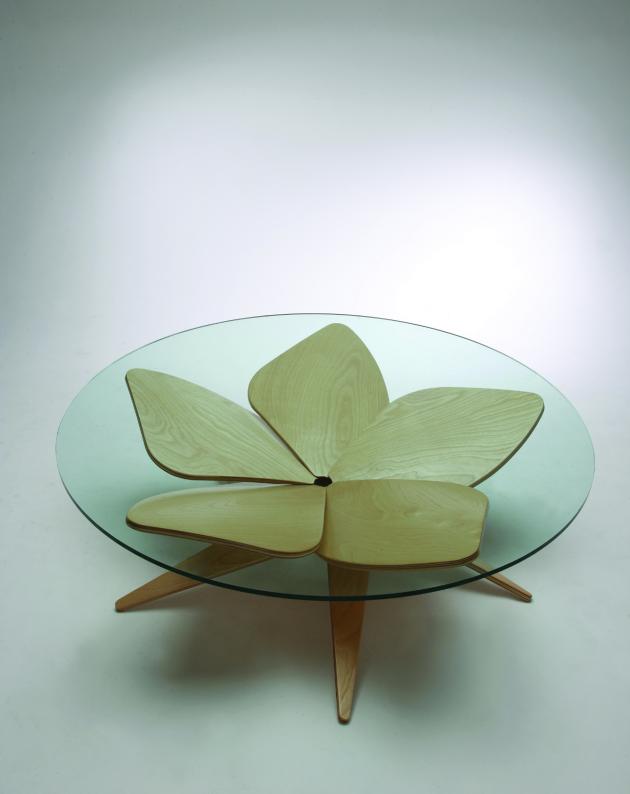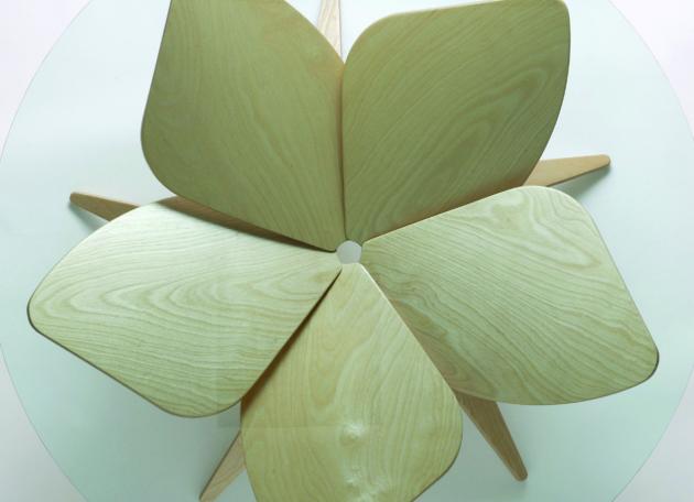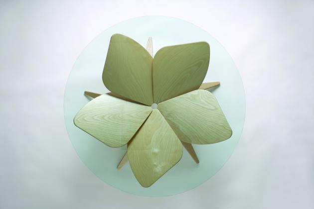 A simple but strikingly beautiful table by Shige Hasegawa, a freelance designer from Tokyo. Called the Hana Table (hana means flower in Japanese), the design of the table makes use of an origami technique, and amazingly, uses only the five plywood legs to hold the glass top. (There are no screws or nails.) The design makes the table easy to disassemble and ideal for shipping.