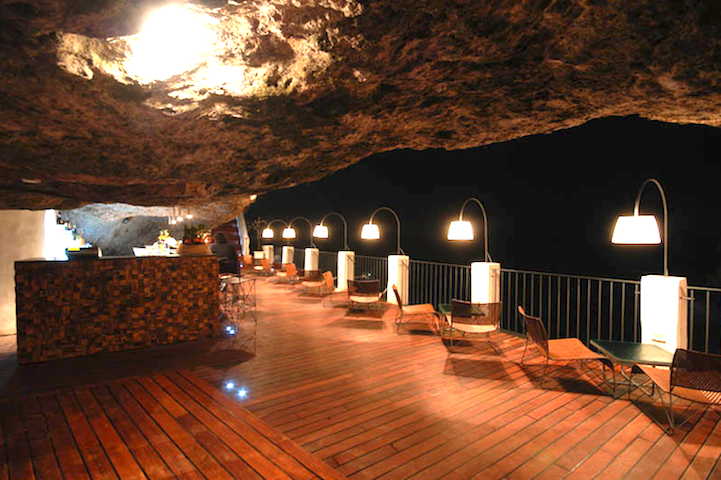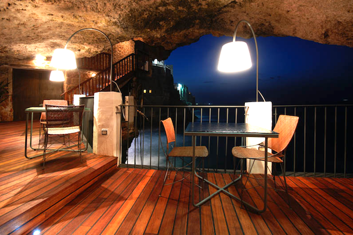 Boutique hotel Grotta Palasezze, located in the town of Polignano a Mare, sits along the eastern coast of Italy with a stunning view of the Adriatic Sea. The hotel and restaurants within have been carved out of the limestone rocks along the shores and according to the hotel website, “For well over 250 years the cavern has been at the heart of the region's festivities and still today remains a unique and romantic location for your celebrations and events.”