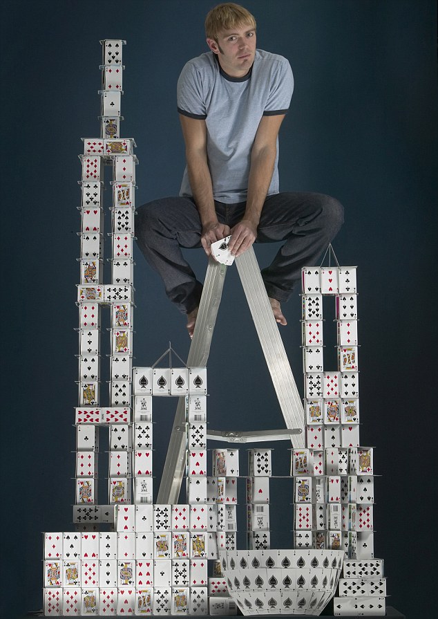 American Bryan Berg built the largest free-standing house of cards at 7.86 meters tall in Dallas.