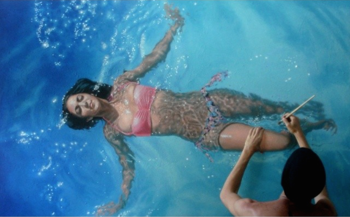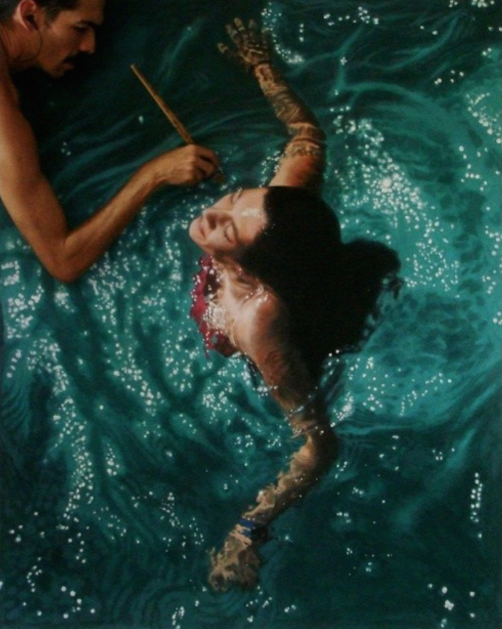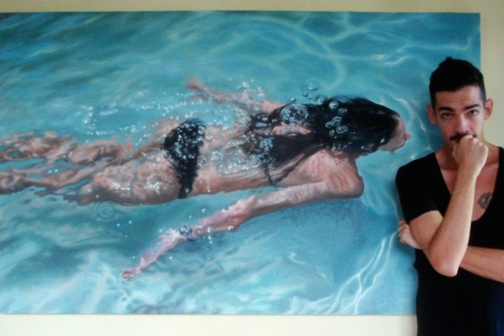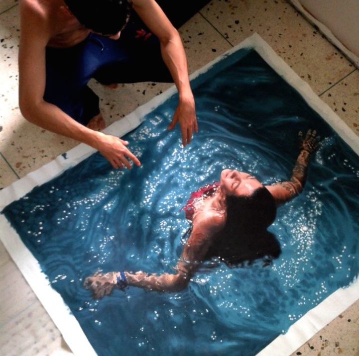 Valencia, Venezuela-based artist Gustavo Silva Nunez creates extraordinary paintings that are so hyperrealistic, they seem to come to life and flow right off the canvas. Submerged in azure pools of water, his subjects float serenely, swim gracefully, splash about, or surface for air with a spray of bubbles. With each stroke of his paintbrush, Nunez captures every last detail–subtle shades of blue, sparkling glimmers of light, distortions of bodies under the water, myriads of ripples and currents, and much more.