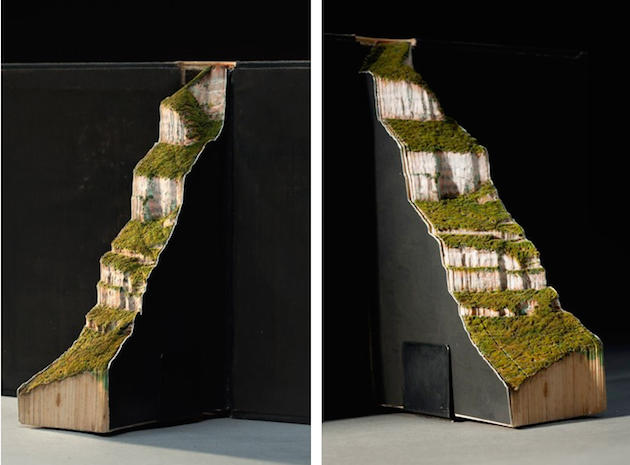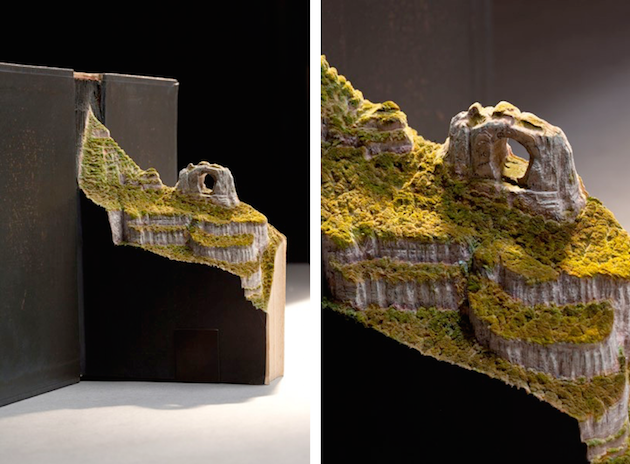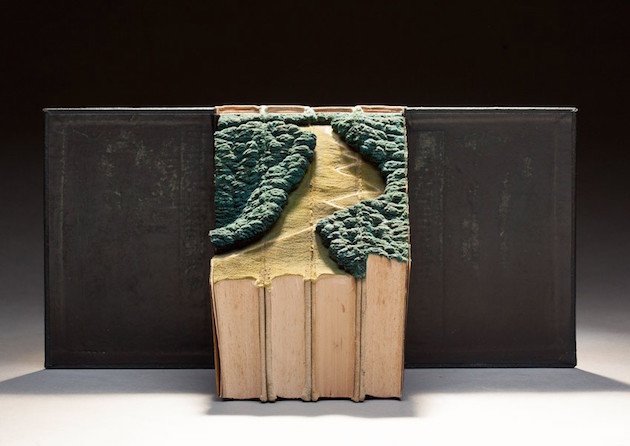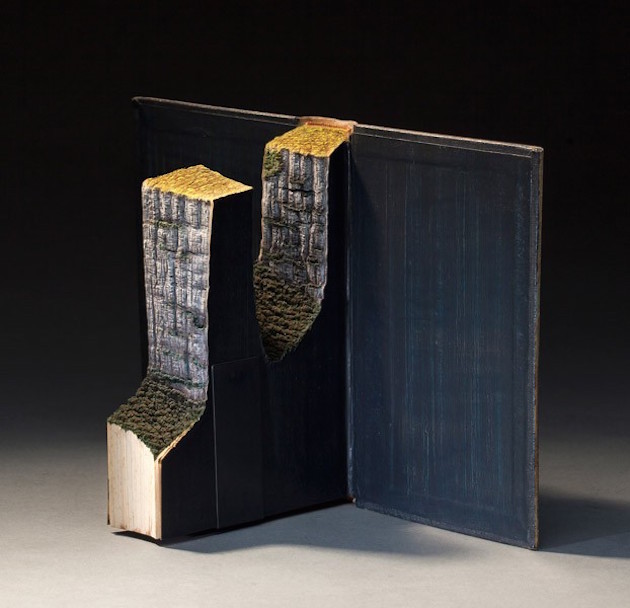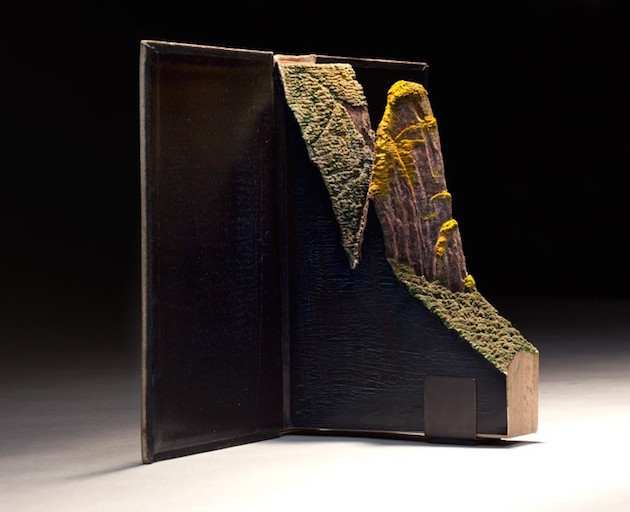 Artist Guy Laramee has made a name for himself through his incredible ability to transform encyclopedias, dictionaries, and secondhand novels into extraordinary mountain landscapes. Drawing inspiration from places that he's visited, the artist carves away at printed materials that have been replaced by technology. Upon the pages of wide-ranging publications, Laramee reveals every tree, curve, canyon, and crack in the Earth's surface. This erosion is a key motif in the carver's work, since it represents the changes that ultimately occur as time goes by.