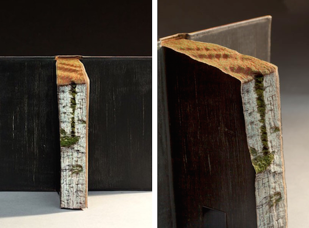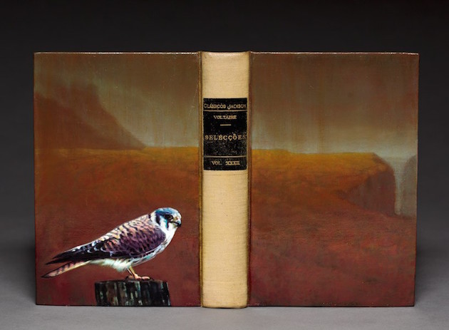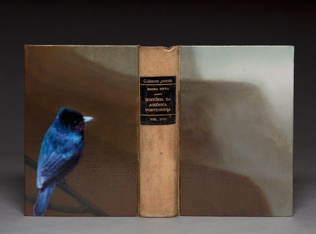 During the sculptor's most recent trip to southern Brazil, he was enchanted not only by the terrain, but he was also captivated by the birds that live there. These beautiful creatures encouraged Laramee to add another feature to his sculptures. Rather than simply transforming the inside of his books, the artist decided to utilize their covers for his latest project. In painting elaborate portraits of Brazilian birds on the outside of his novels, Laramee intends to show viewers that both nature and literature are not one-sided.