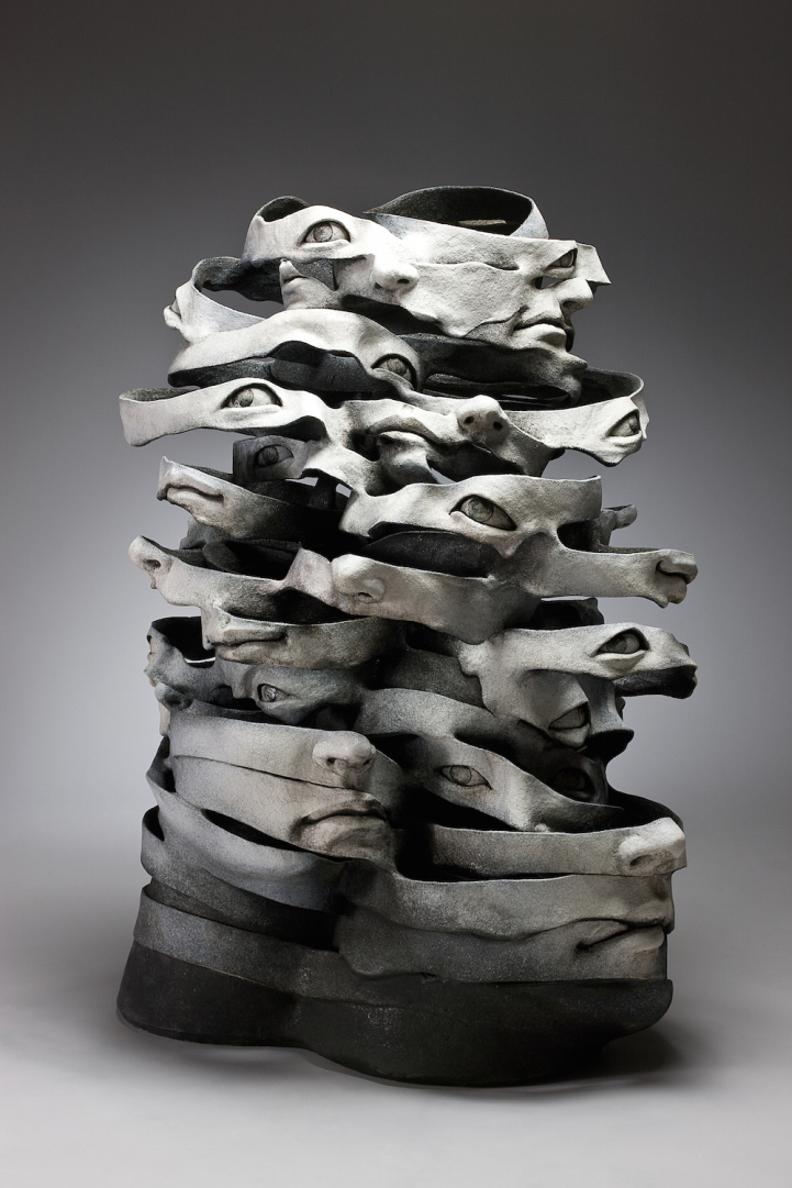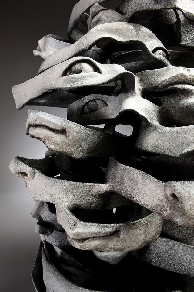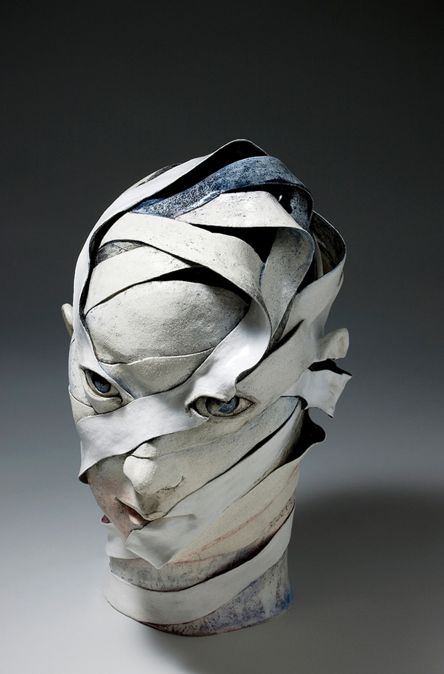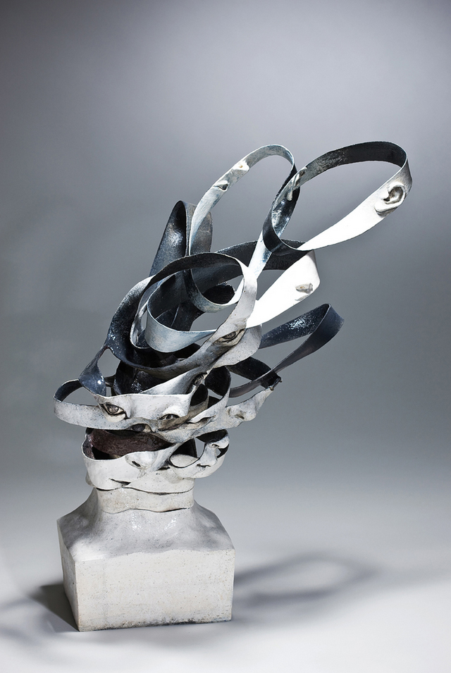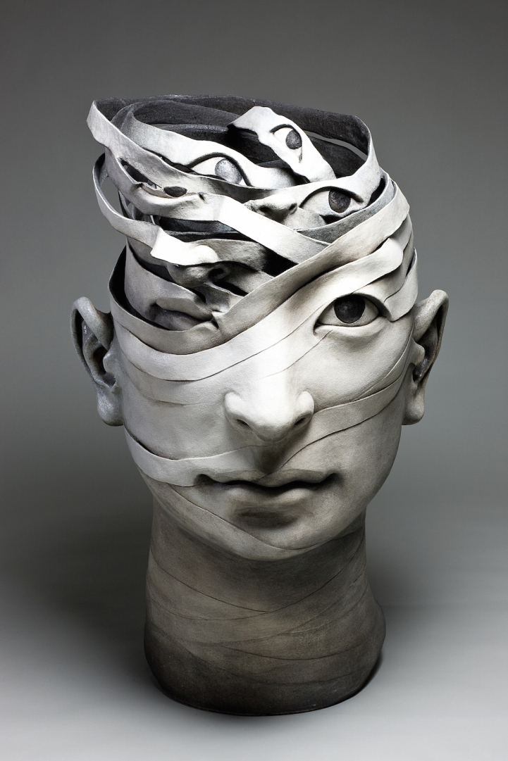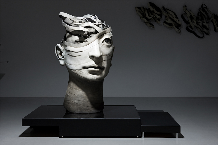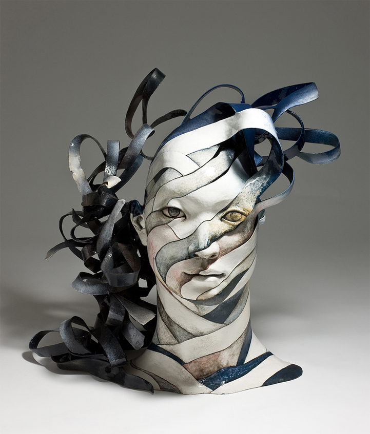 Seoul-based artist Haejin Lee creates ceramic works that look as though they'll unravel at any moment. Concentrating primarily on the human body, the sculptor fashions heads and feet that look mostly whole, but have ribbon-like strands rippling from the top of each piece. They appear in various stages of disarray, with facial features that have been twisted and multiplied, which adds another facet of eeriness to the already-surreal works.
