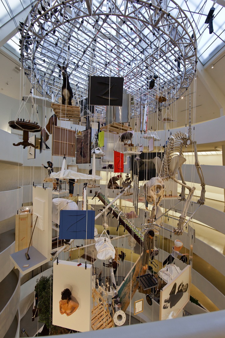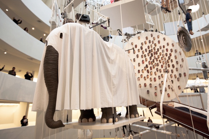Entitled “All,” the exhibit is a retrospective of Cattelan's body of work since 1989. Each sculpture hangs from the ceiling suspended by ropes and references the idea of death. It's quite an unusual way to display art, and this unorthodox style only adds to Cattelan's peculiar personality. “All” will be on view at the Guggenheim until January 22, 2012.